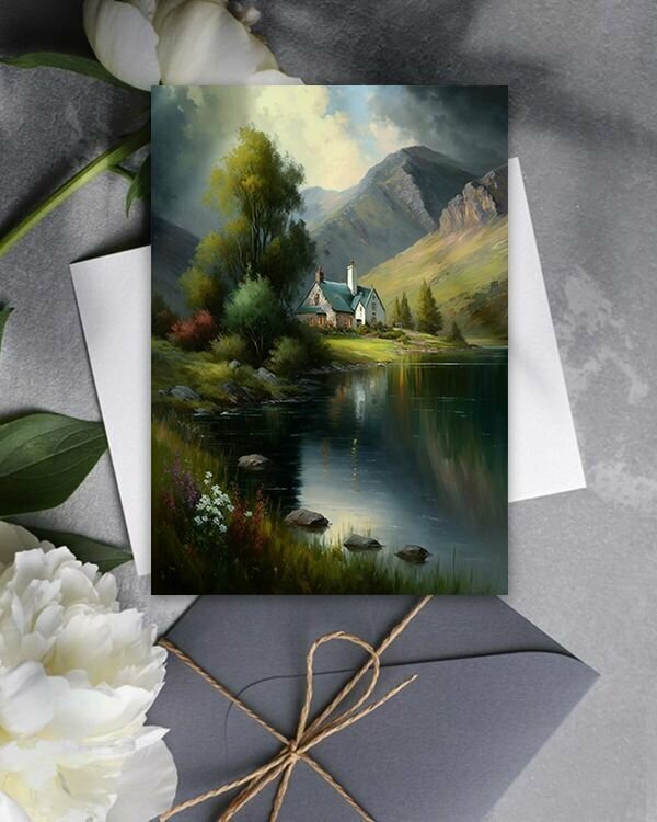 Набор открыток "Пейзаж с домиком", 10.5 см х 15 см, 4 шт, InspirationTime, на подарок и в коллекцию