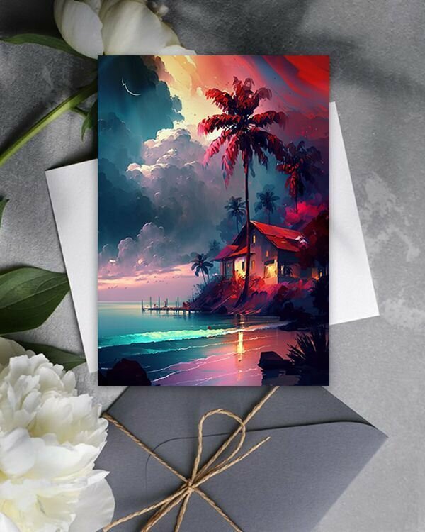 Набор открыток "Домик у моря", 10.5 см х 15 см, 4 шт, на подарок и в коллекцию