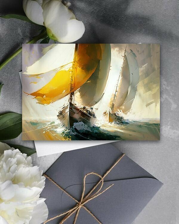 10 цен на Набор открыток "Морская 3", Парусник, море, 10.5 см х 15 см, 4 шт, на подарок и в коллекцию