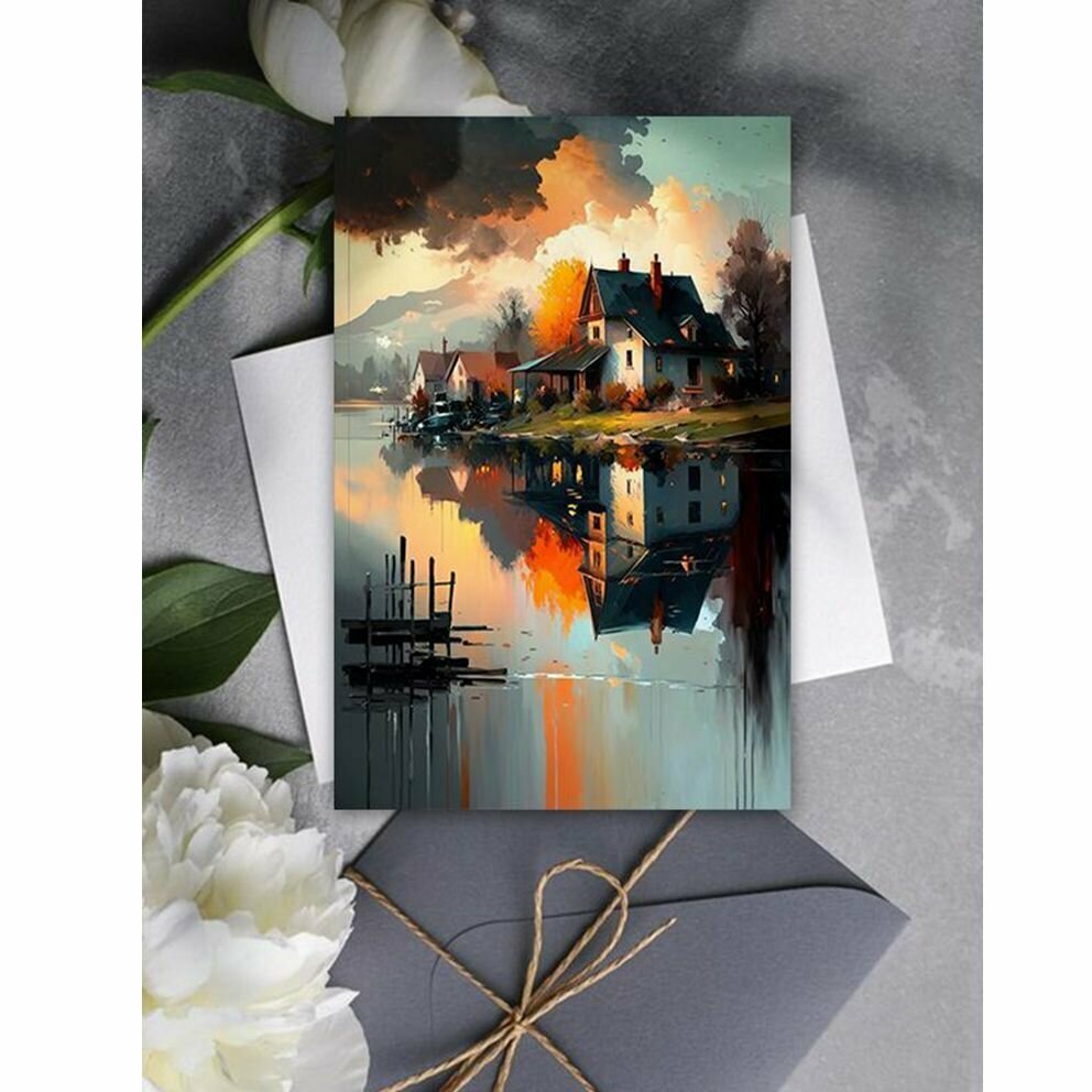 Набор открыток "Пейзаж с домиком", 10.5 см х 15 см, 4 шт, InspirationTime, на подарок и в коллекцию