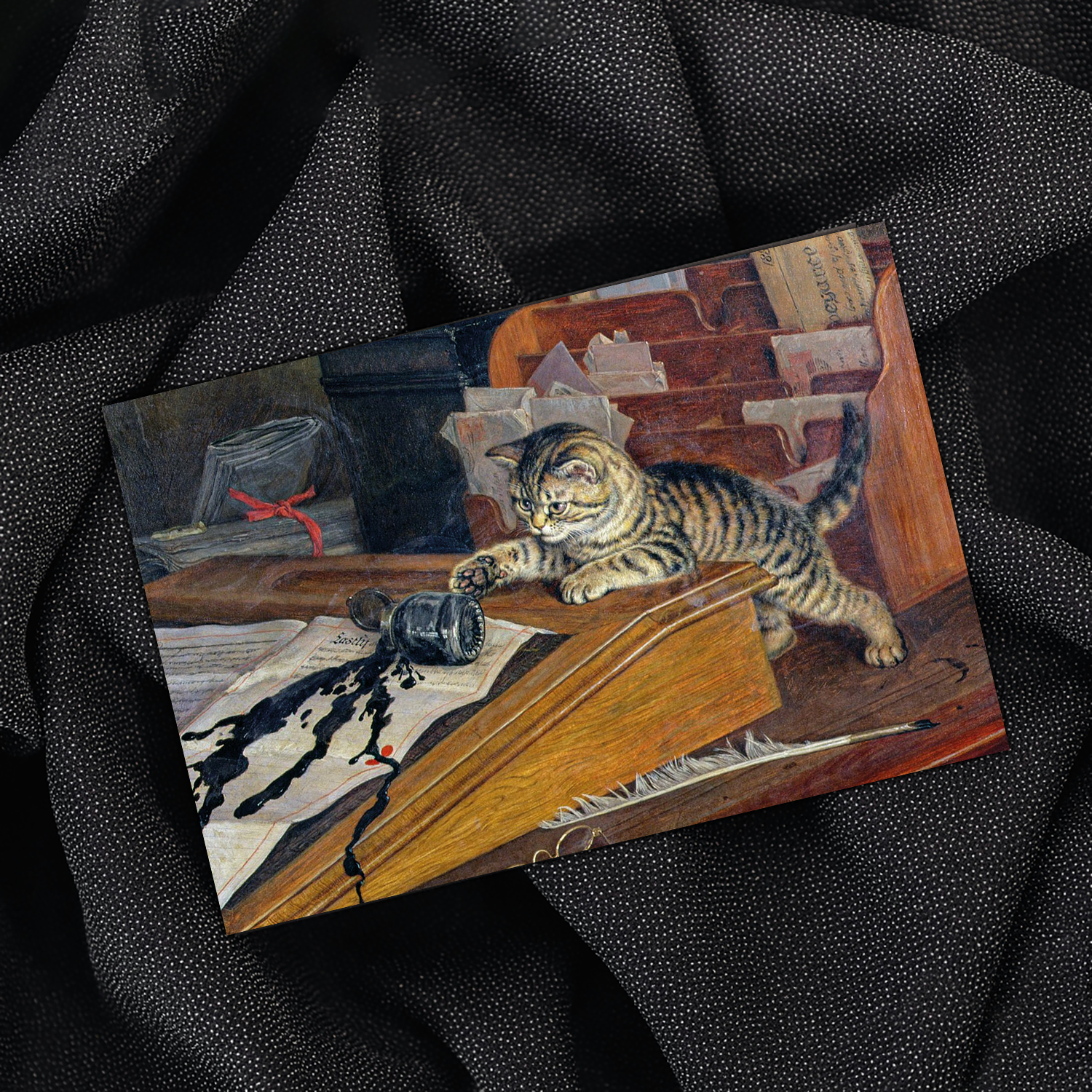 Дизайнерская открытка "Котенька-неряха" (классическая живописть) информация: