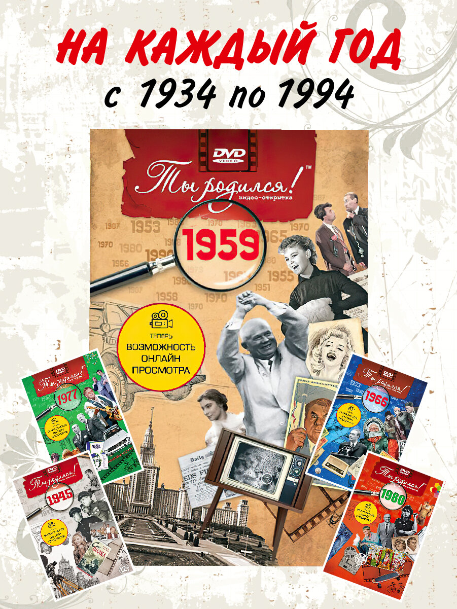 10 цен на Открытка с фильмом к дню рождения 66 лет, 1959 год рождения