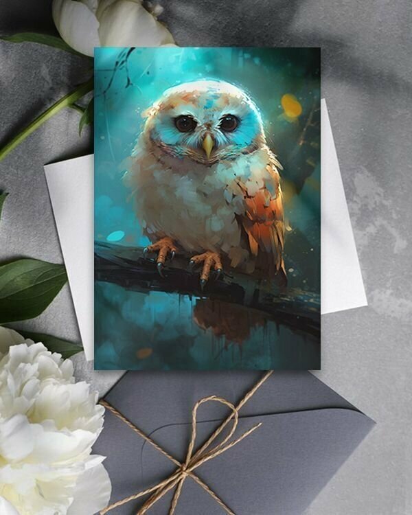 Набор открыток "Птицы Сова Сипуха 2", 10.5 см х 15 см, 4 шт, InspirationTime, на подарок и в коллекцию