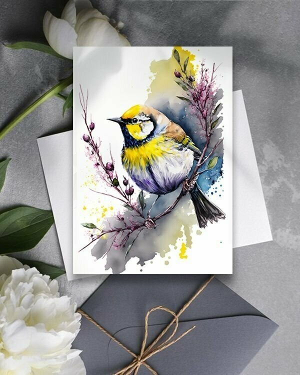 Набор открыток Акварельные Птицы 5, 10.5 см х 15 см, 4 шт, InspirationTime, на подарок и в коллекцию