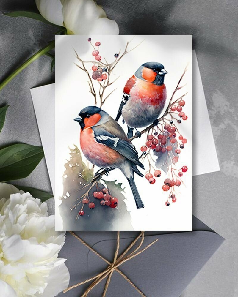 Набор открыток "Птицы Снегири", 10.5 см х 15 см, 4 шт, InspirationTime, на подарок и в коллекцию информация: