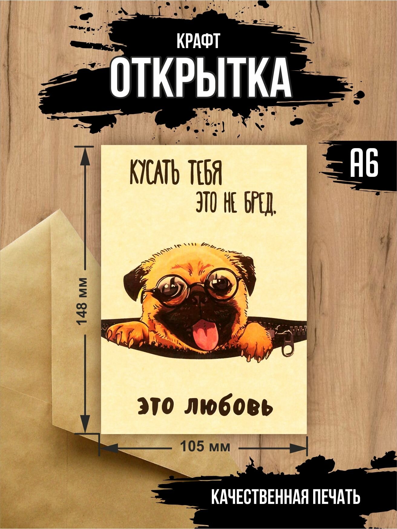 10 цен на Набор крафт открыток "Мопс" прикольные в конверте 4 шт.
