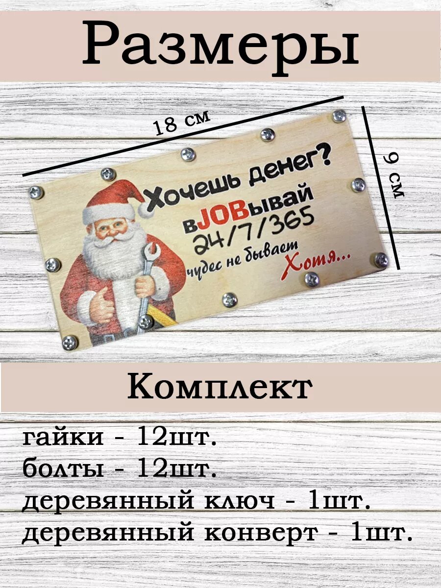 10 цен на Конверт для денег на болтах с приколом "Работящий Дед Мороз"