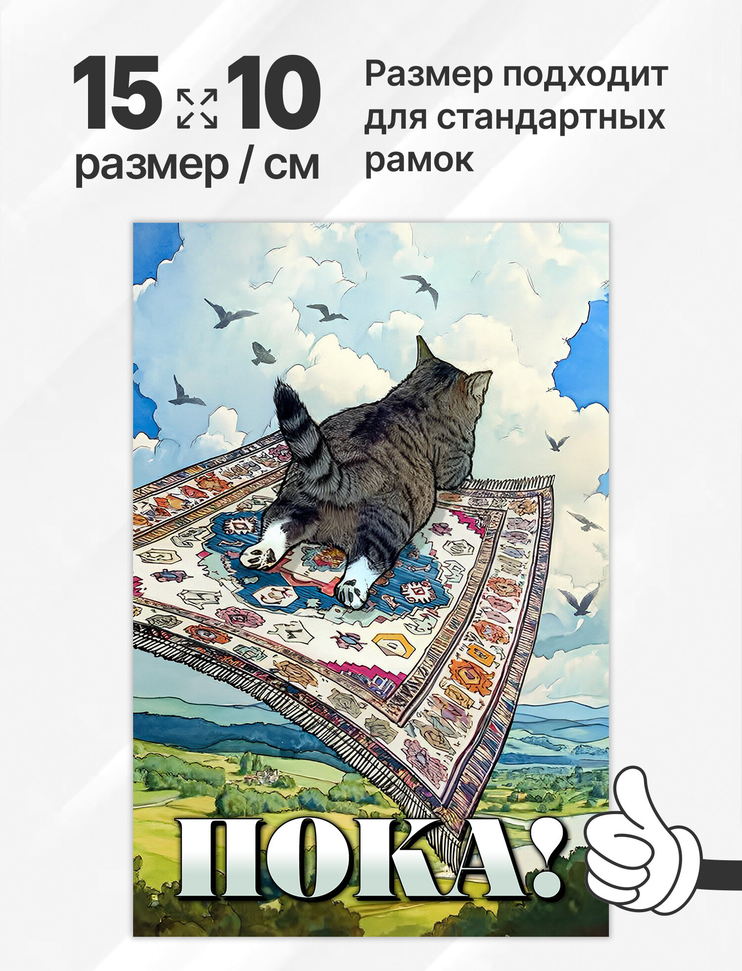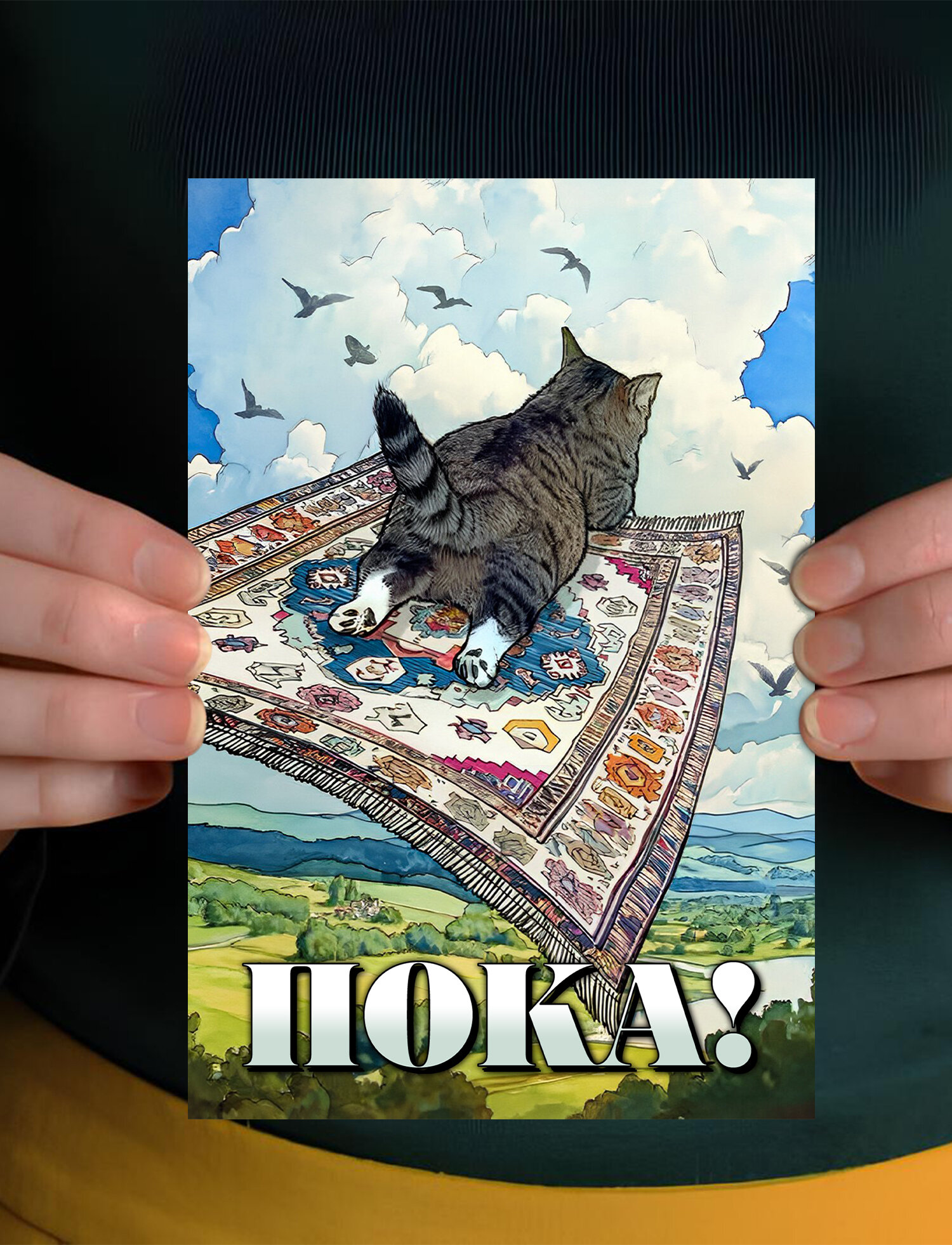 10 цен на "Котик, пока!" открытка (подходит под рамку 10х15см, плотная бумага, живопись)
