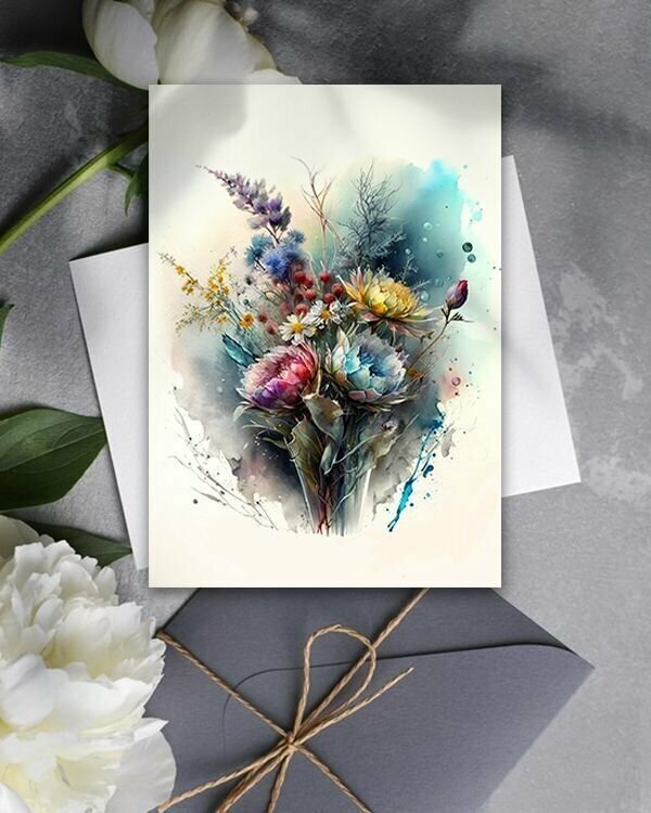 Набор открыток "Букет акварельных цветов", 10.5 см х 15 см, 4 шт, InspirationTime, на подарок и в коллекцию 598 ₽