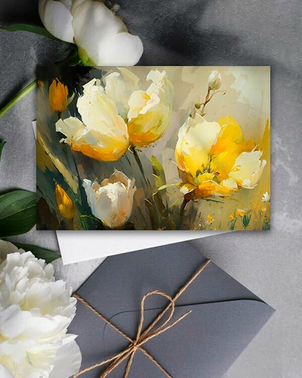 Набор открыток Весенние цветы Тюльпаны, 10.5 см х 15 см, 4 шт, InspirationTime, на подарок и в коллекцию