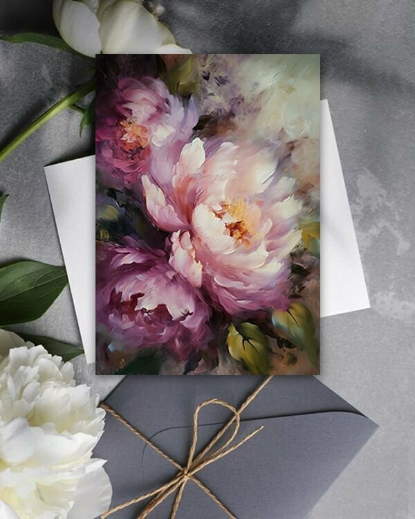 Набор открыток "Цветы Пионы", 10.5 см х 15 см, 4 шт, InspirationTime, на подарок и в коллекцию