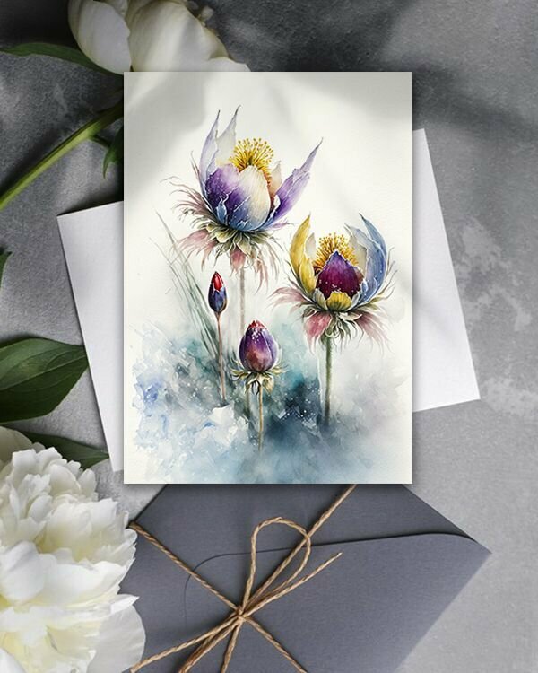 Набор открыток Весенние цветы Сон-трава Подснежники, 10.5 см х 15 см, 4 шт, InspirationTime, на подарок и в коллекцию