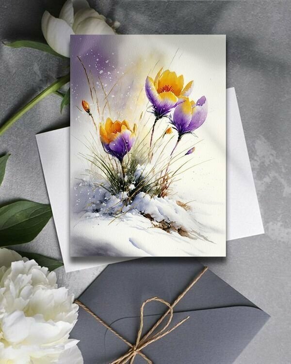10 цен на Набор открыток Весенние цветы Крокусы 2 Подснежники, 10.5 см х 15 см, 4 шт, InspirationTime, на подарок и в коллекцию