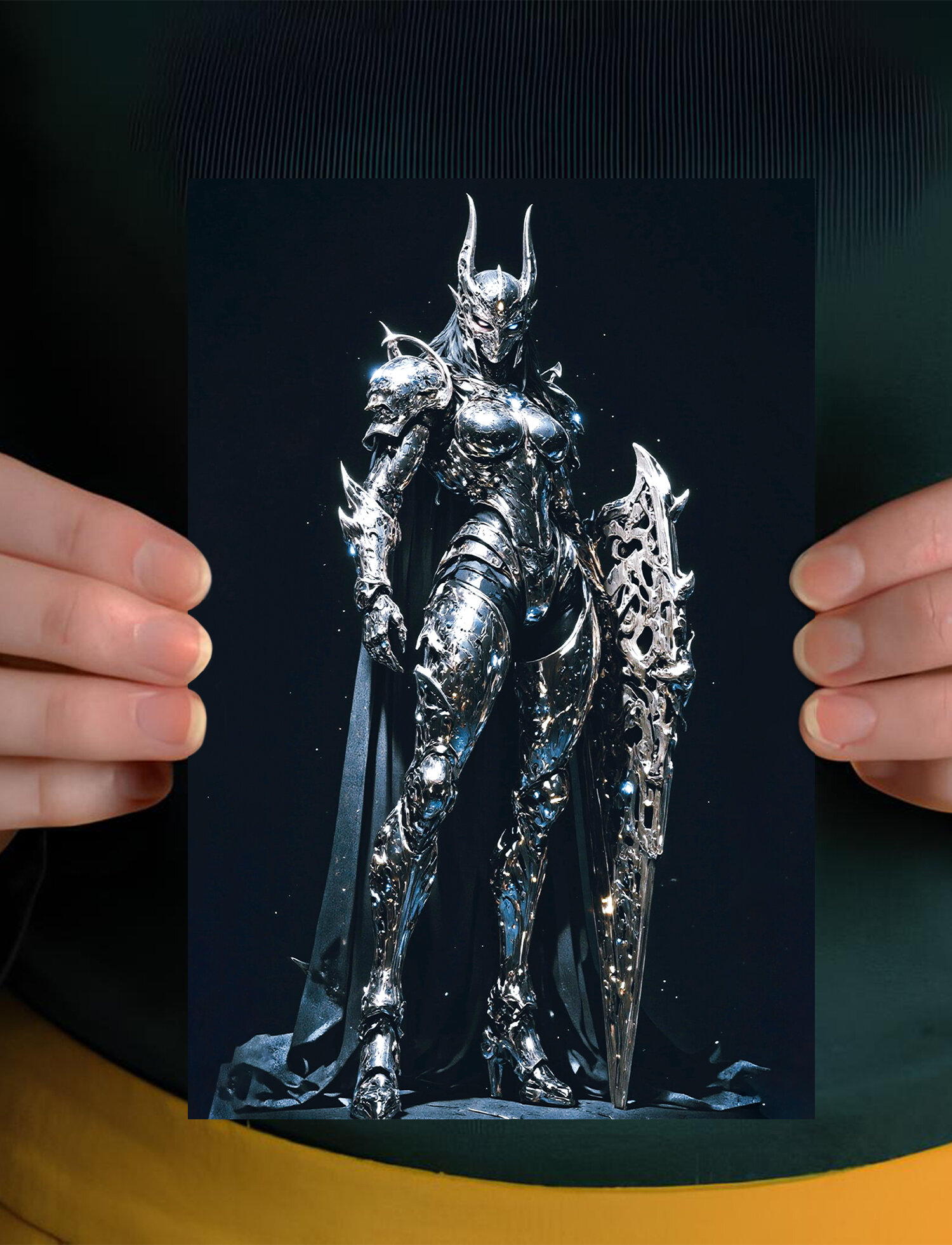 Отзывы на "Девушка рыцарь II" открытка (подходит под рамку 10х15см, плотная бумага, киберпанк, рыцарь)