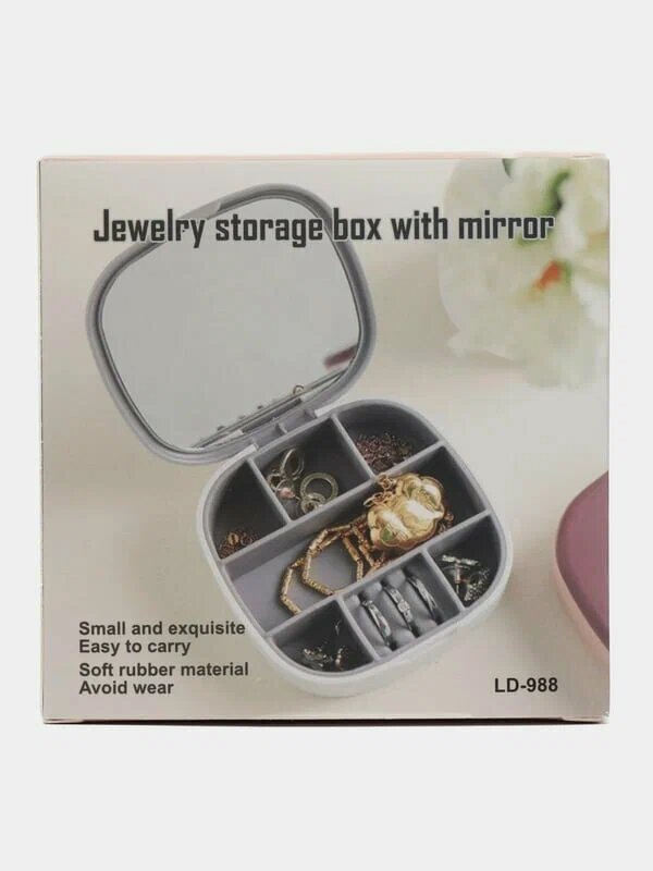 Отзывы на Органайзер-шкатулка для украшений и бижутерии дорожный, с зеркалом, белый/серый