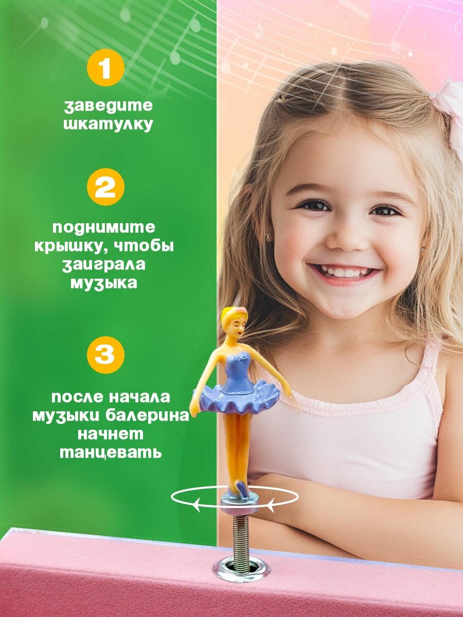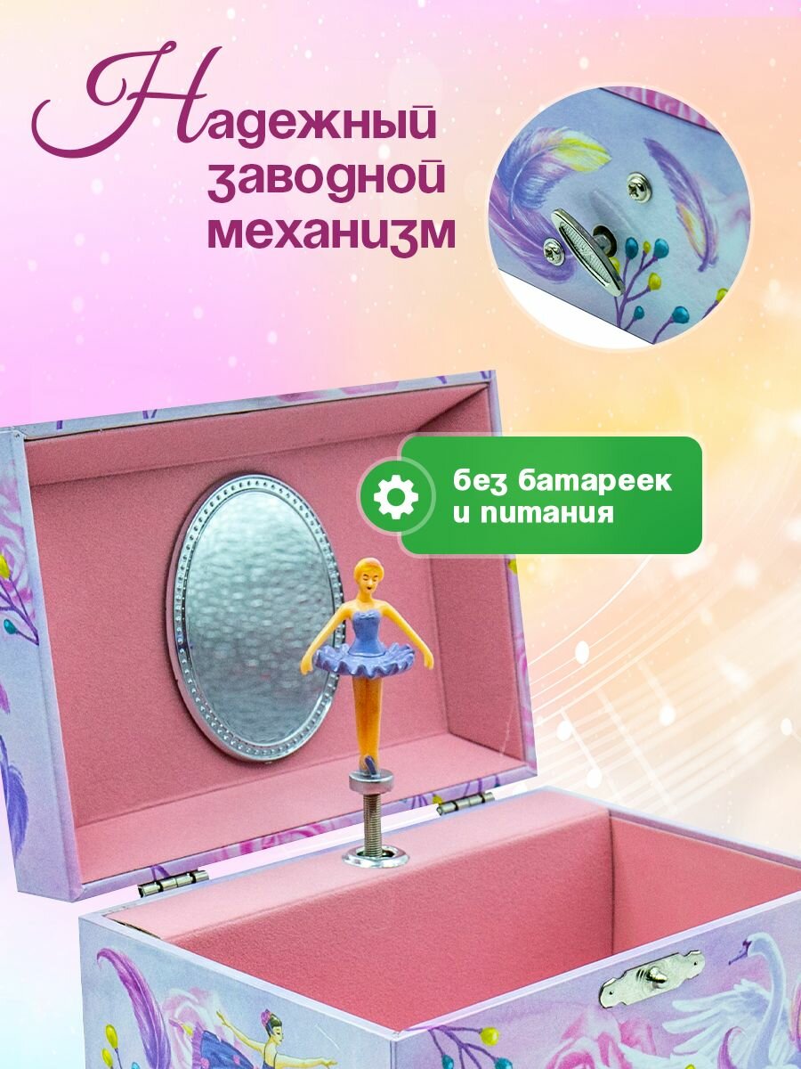 Музыкальная прямоугольная шкатулка для украшений с балериной информация: