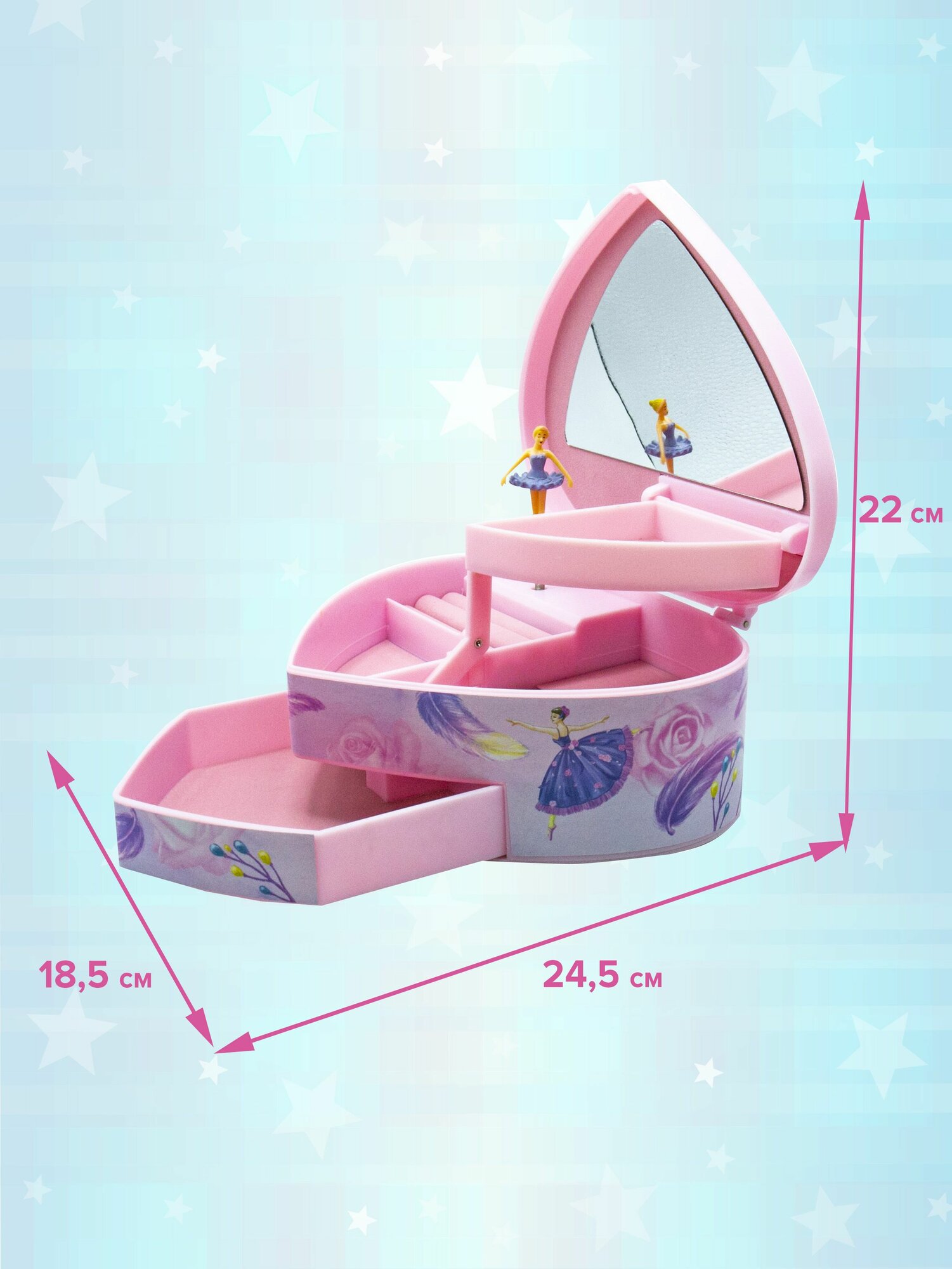 Шкатулка для украшений с зеркалом Remecoclub музыукальная из полимера, 22x12x10 см