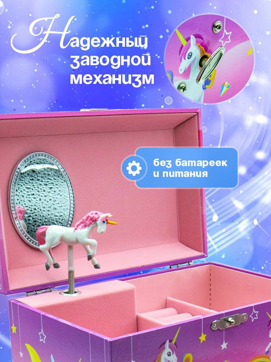 Шкатулка для украшений с зеркалом Remecoclub музыукальная из полимера, 22x12x10 см