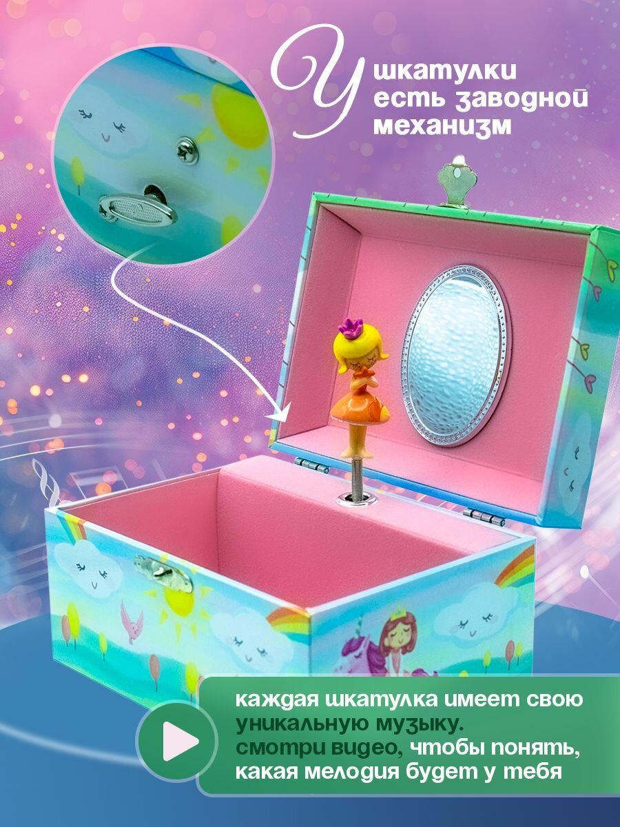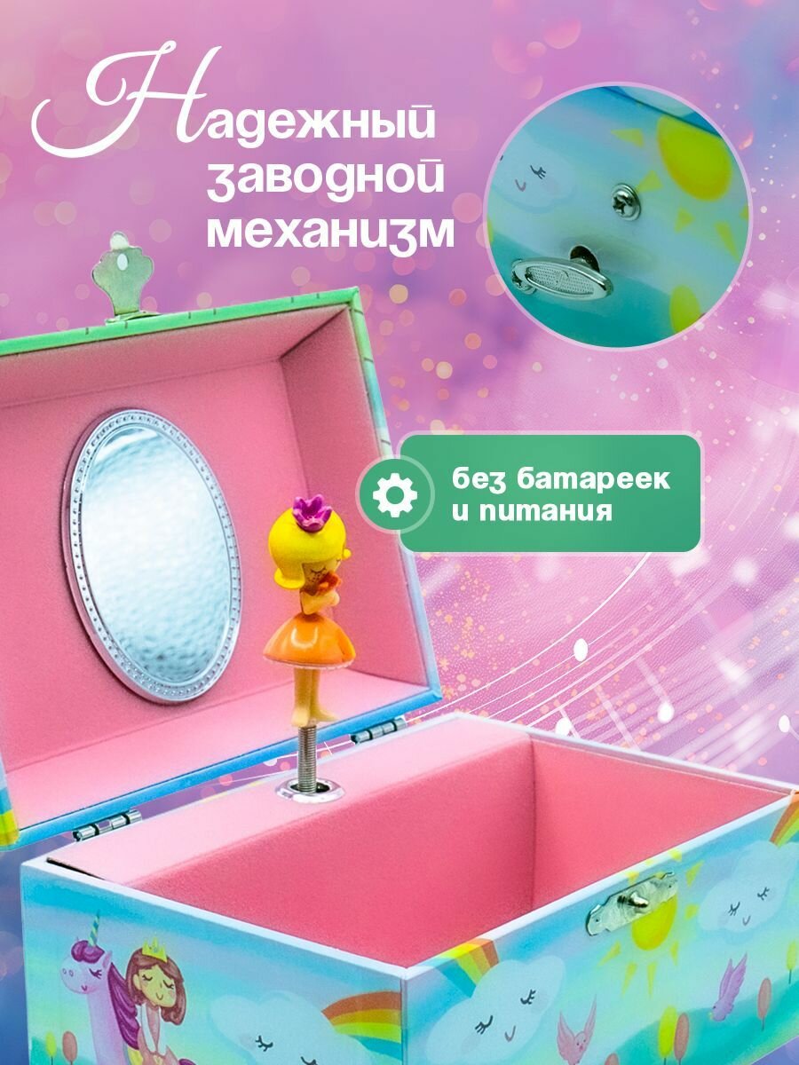Шкатулка для украшений с зеркалом Remecoclub музыукальная из полимера, 22x12x10 см