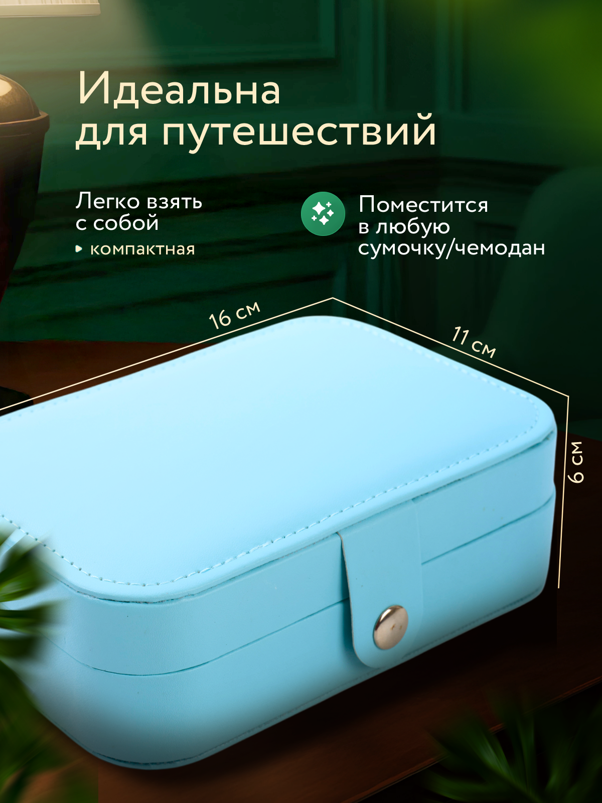 Шкатулка-организатор для украшений, прямоугольная, Голубая 16x10,8x5 см информация: