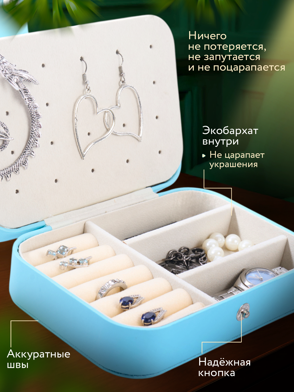 Отзывы на Шкатулка-организатор для украшений, прямоугольная, Голубая 16x10,8x5 см