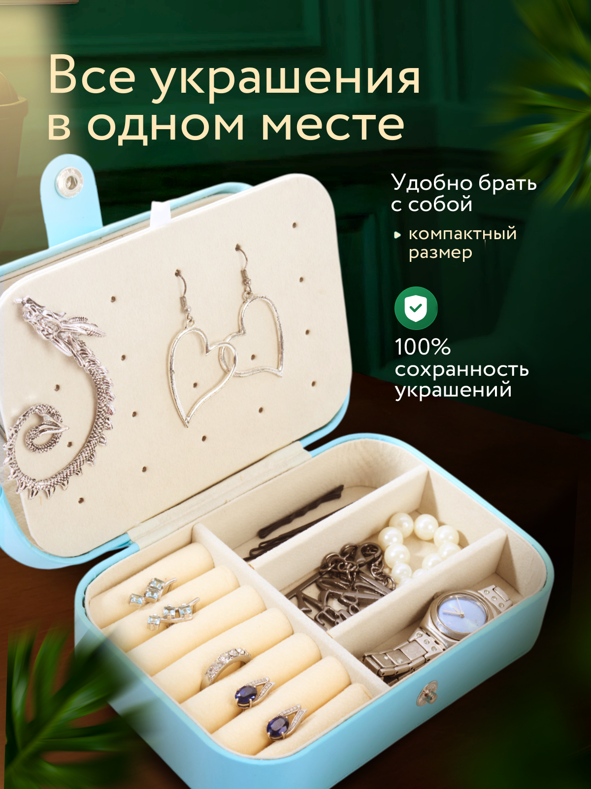 10 цен на Шкатулка-организатор для украшений, прямоугольная, Голубая 16x10,8x5 см