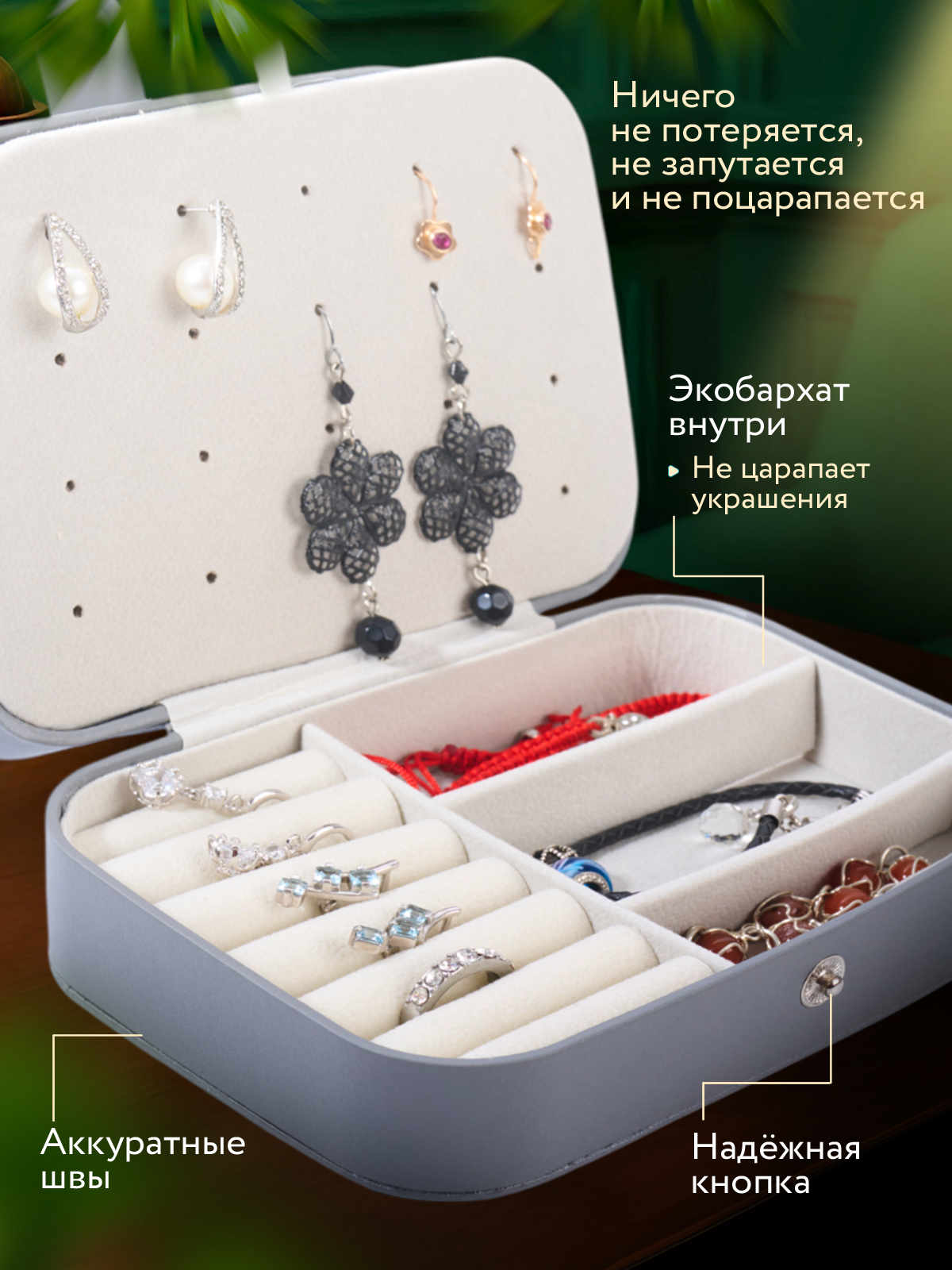 10 цен на Шкатулка-организатор для украшений, прямоугольная, Серая 16x10,8x5 см