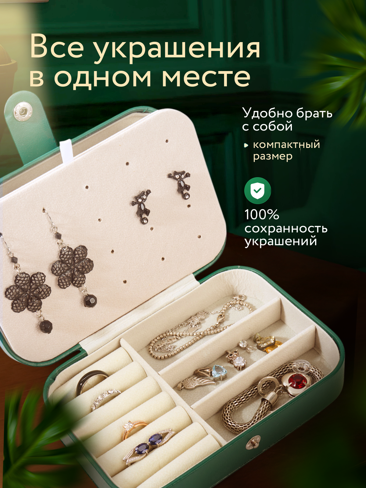 10 цен на Шкатулка-организатор для украшений, прямоугольная, Зеленая 16x10,8x5 см