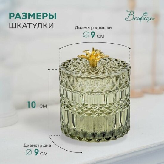 10 цен на Шкатулка стеклянная Вещицы 9х9х10 см, оливковый (Fancy32)