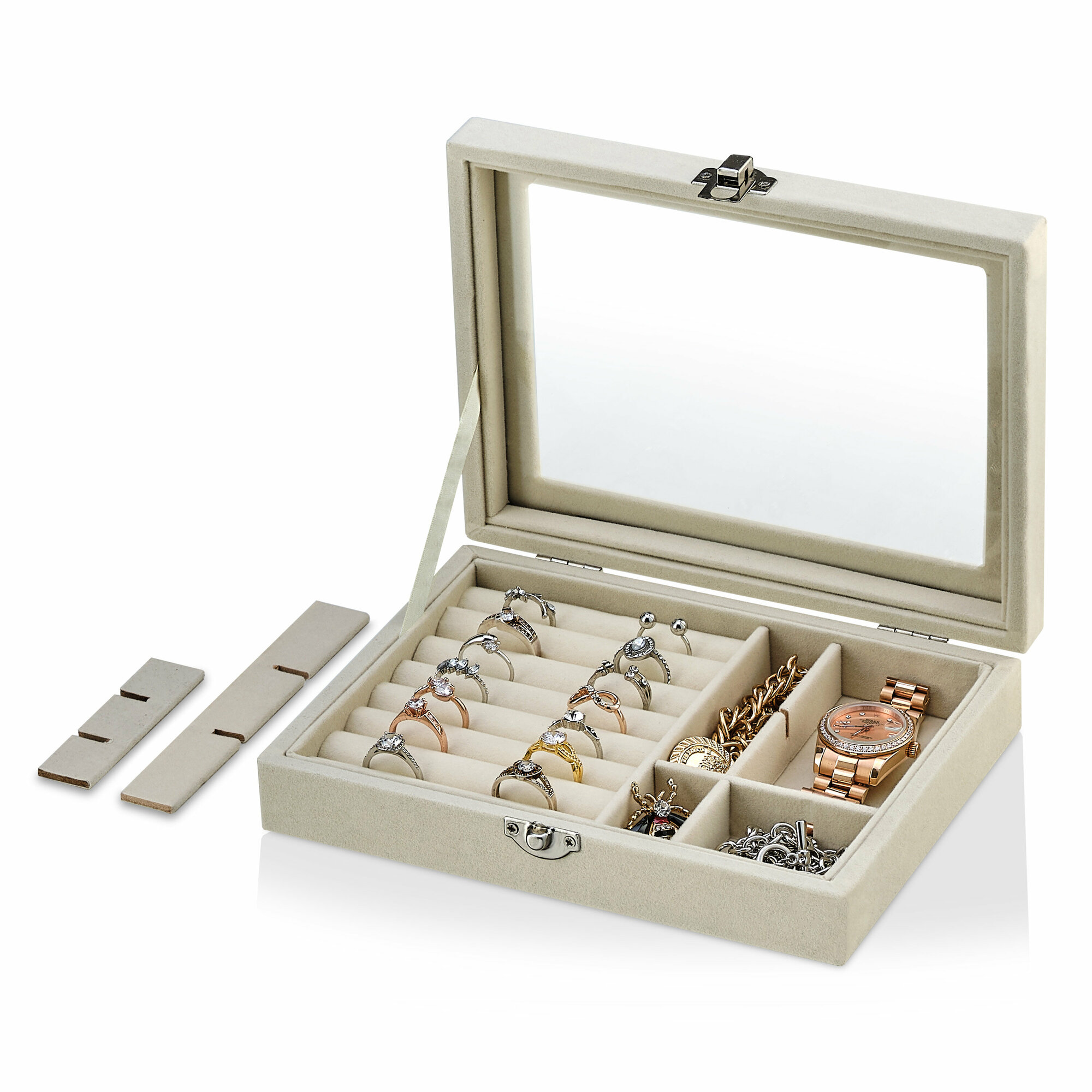 10 цен на Шкатулка для ювелирных украшений и бижутерии серая / Органайзер для хранения / Коробка для колец / Держатель Z1115-Beige