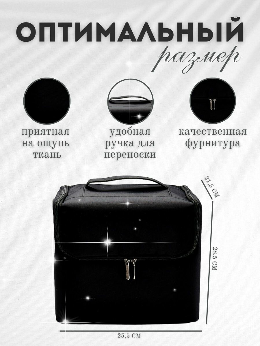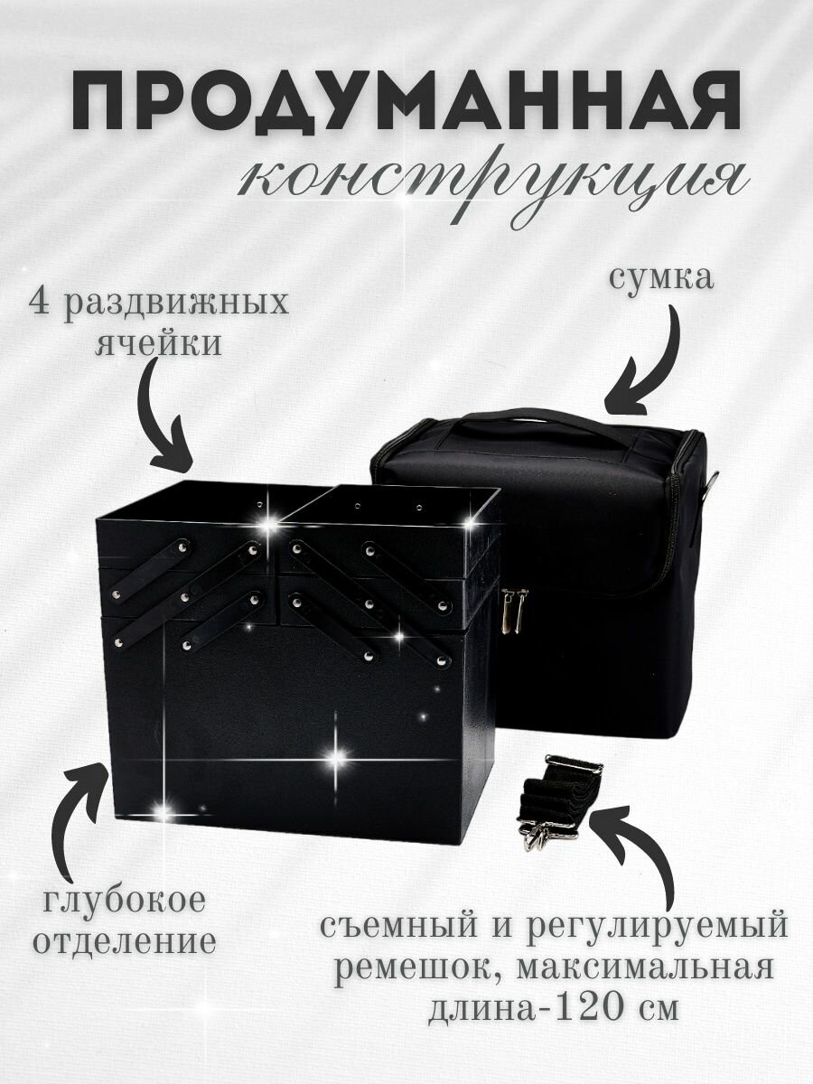 10 цен на Шкатулка бьюти-кейс большая для украшений, бижутерии, часов, маникюрных инструментов с замком черная