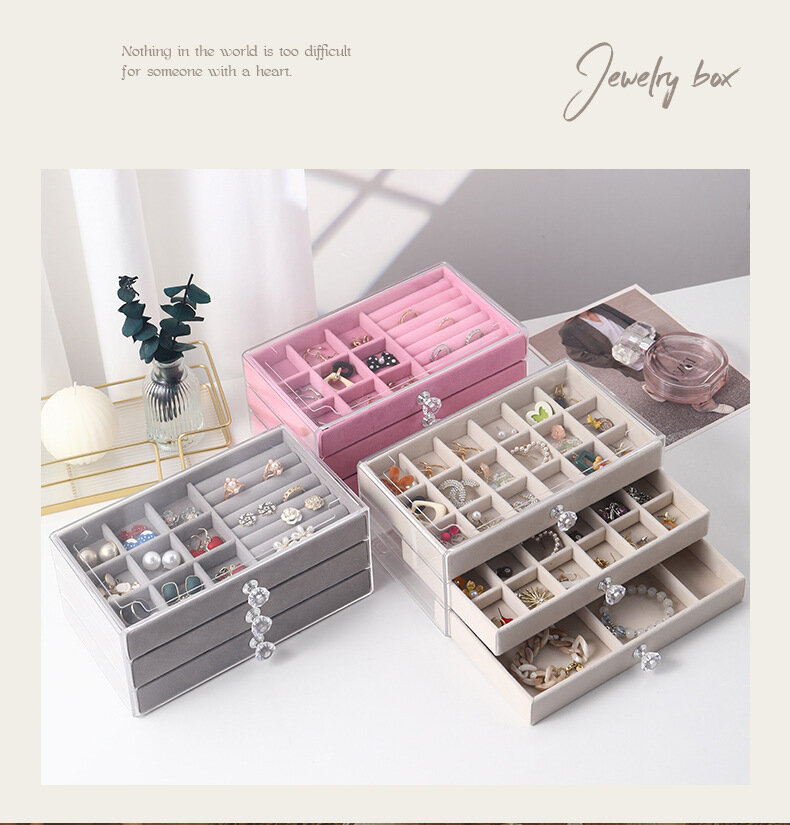 Шкатулка-органайзер для украшений, трехъярусная, вишнёво-розовая, велюр, 23,5 x 10,5 х 13,5 см 1 200 ₽