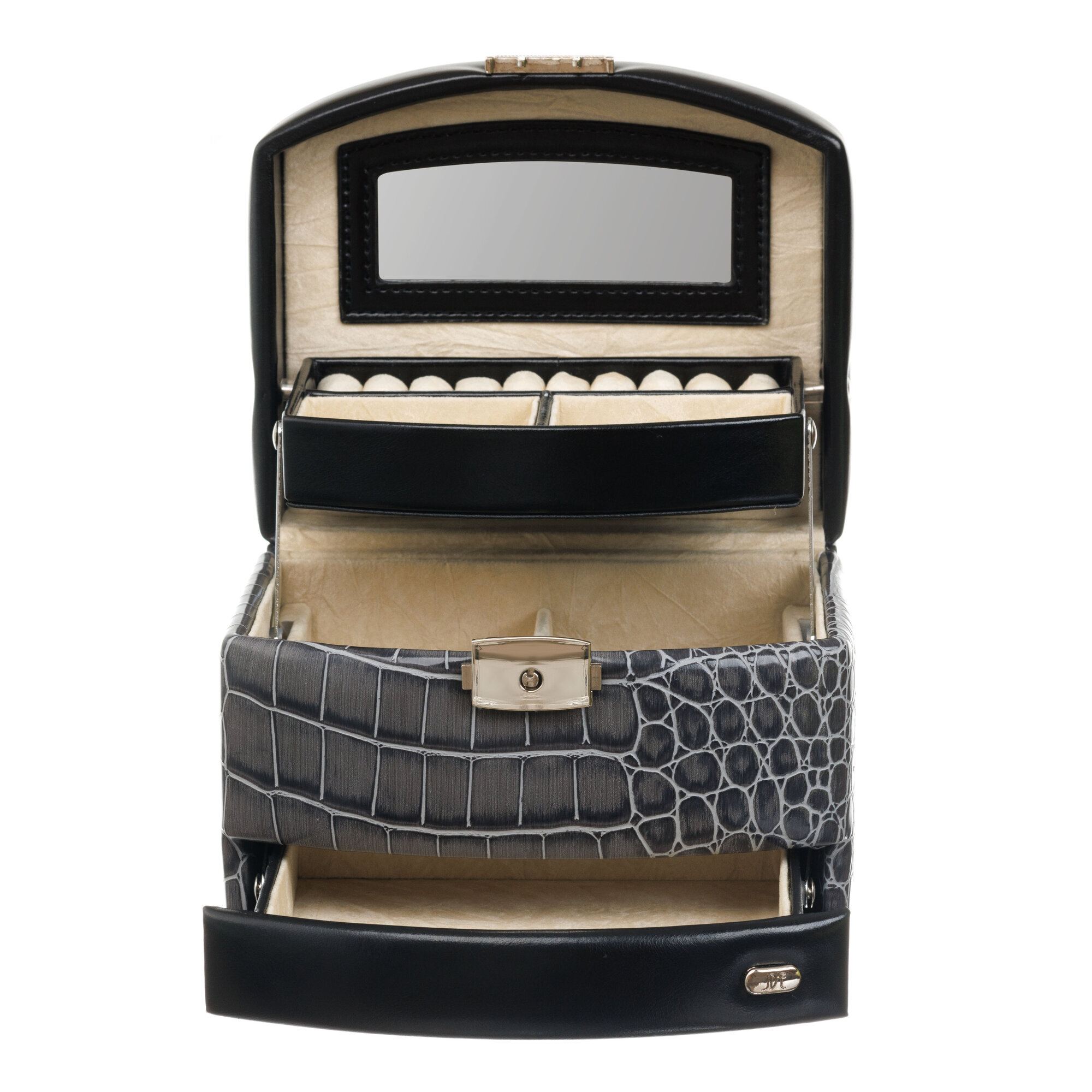 10 цен на Шкатулка для украшений Jardin D'Ete, 15.8 х 13 х 11.5 см, искусственная кожа, цвет антрацит, "рептилия" (P6031)
