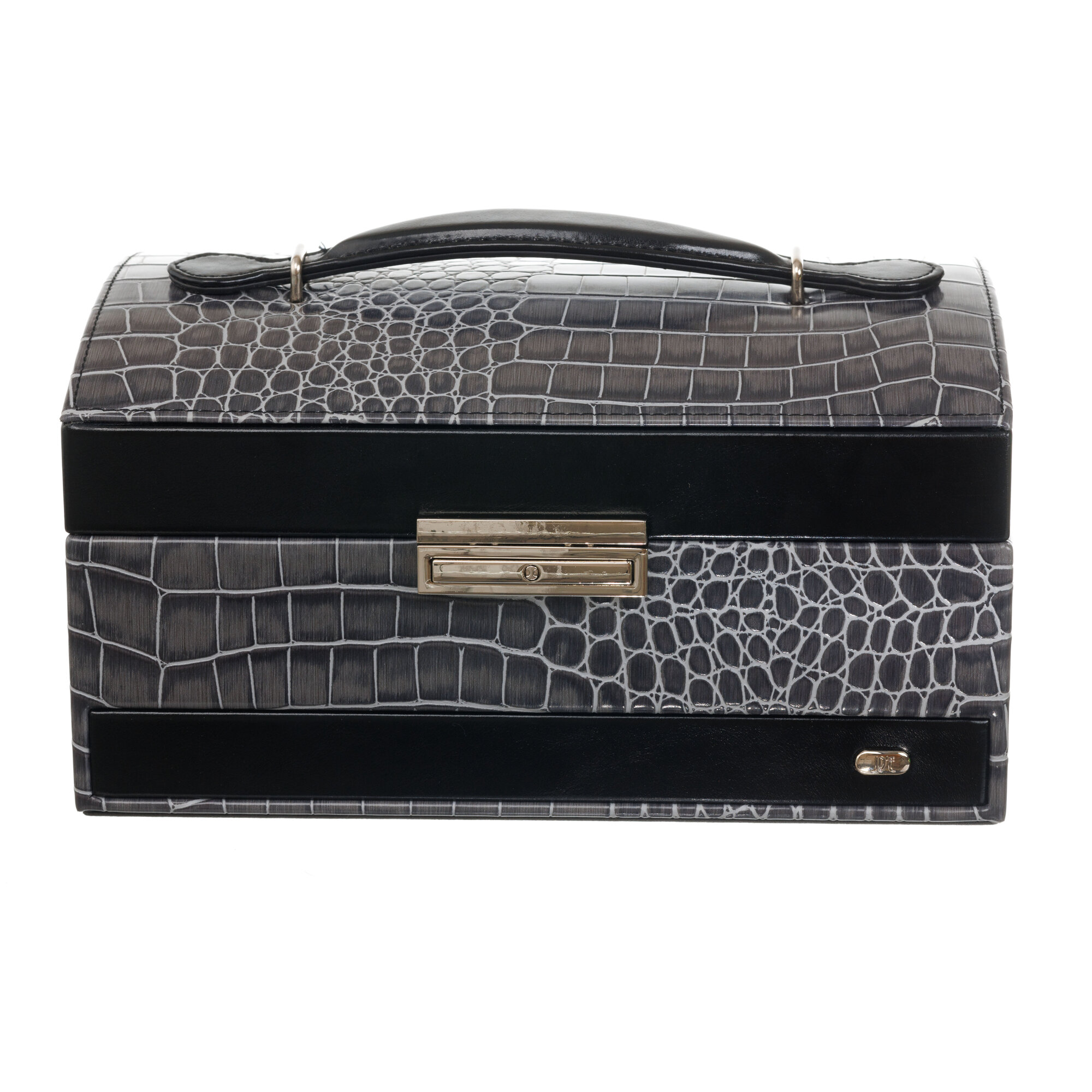 10 цен на Шкатулка для украшений Jardin D'Ete, 24.8 х 16 х 12,5 см, искусственная кожа, цвет антрацит, "рептилия" (P6032)