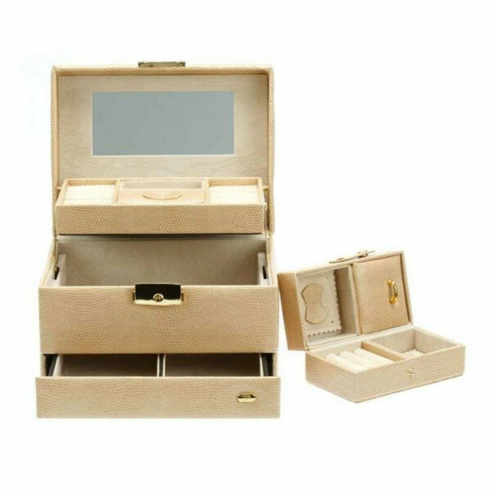 Шкатулка для украшений Jardin D'Ete, 25 х 19 х 17,2 см, искусственная кожа, цвет бежево-золотой (P6847A) 7 040 ₽