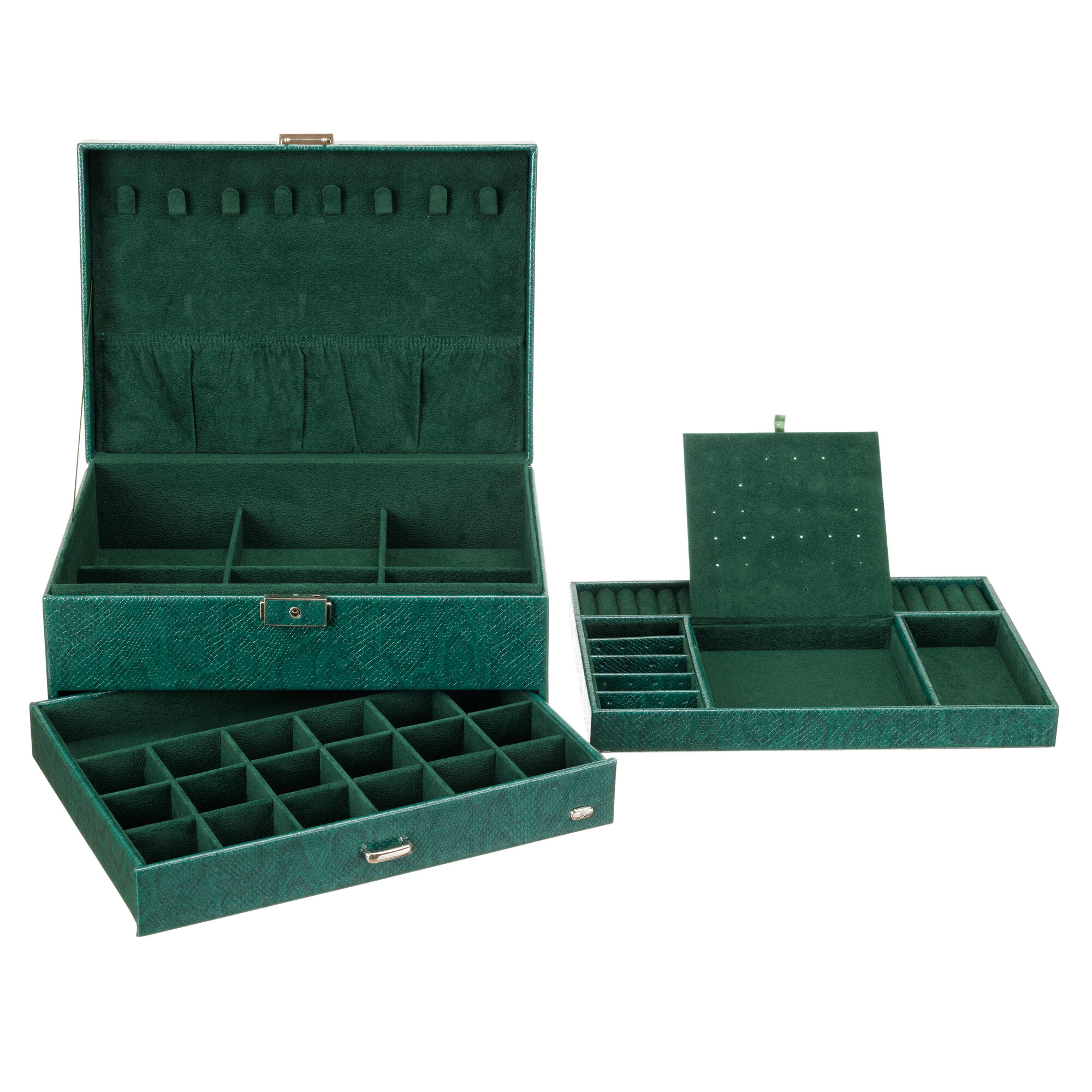 10 цен на Шкатулка для украшений большая деревянная Jardin D'Ete, искусственная кожа, зеленая