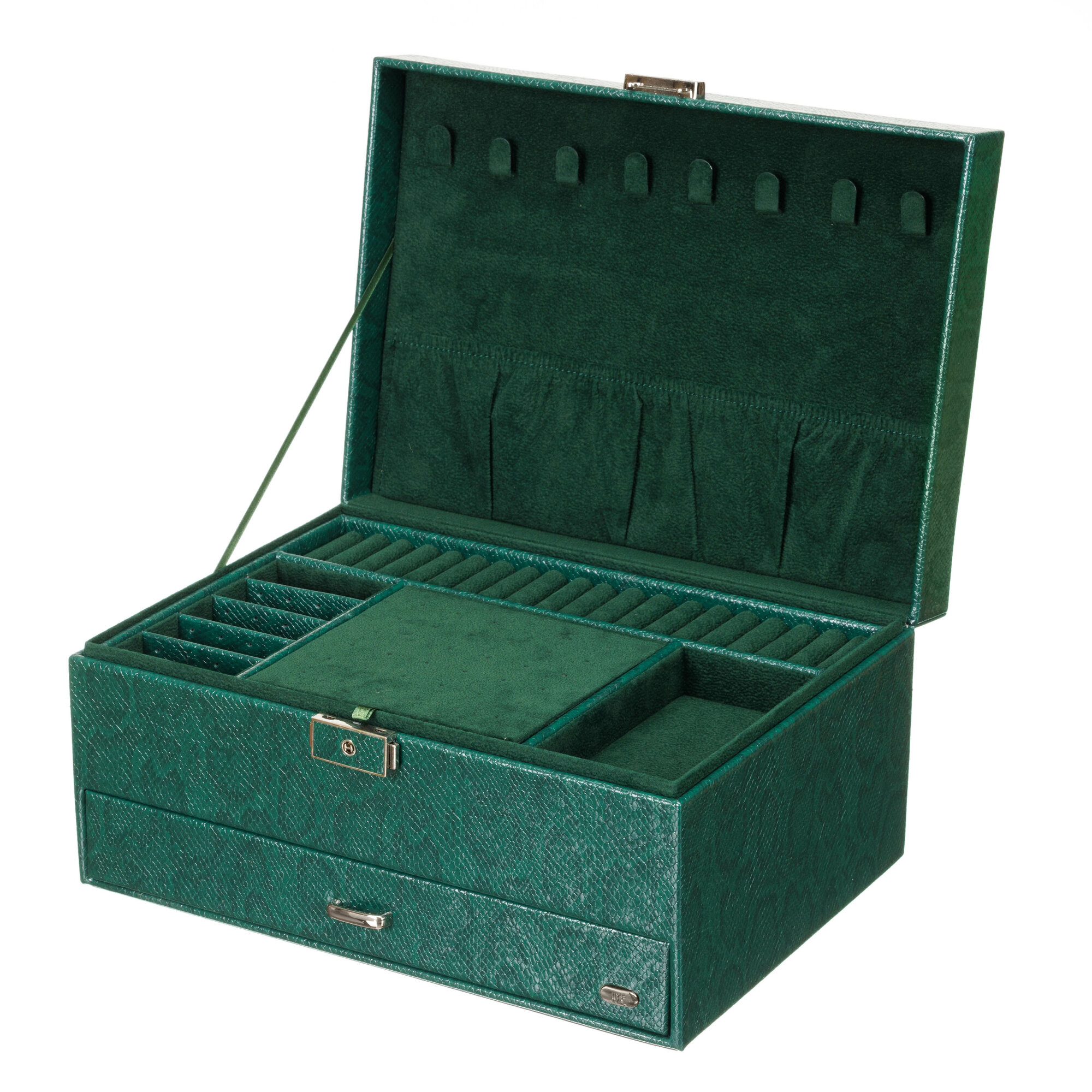 Шкатулка для украшений большая деревянная Jardin D'Ete, искусственная кожа, зеленая информация: