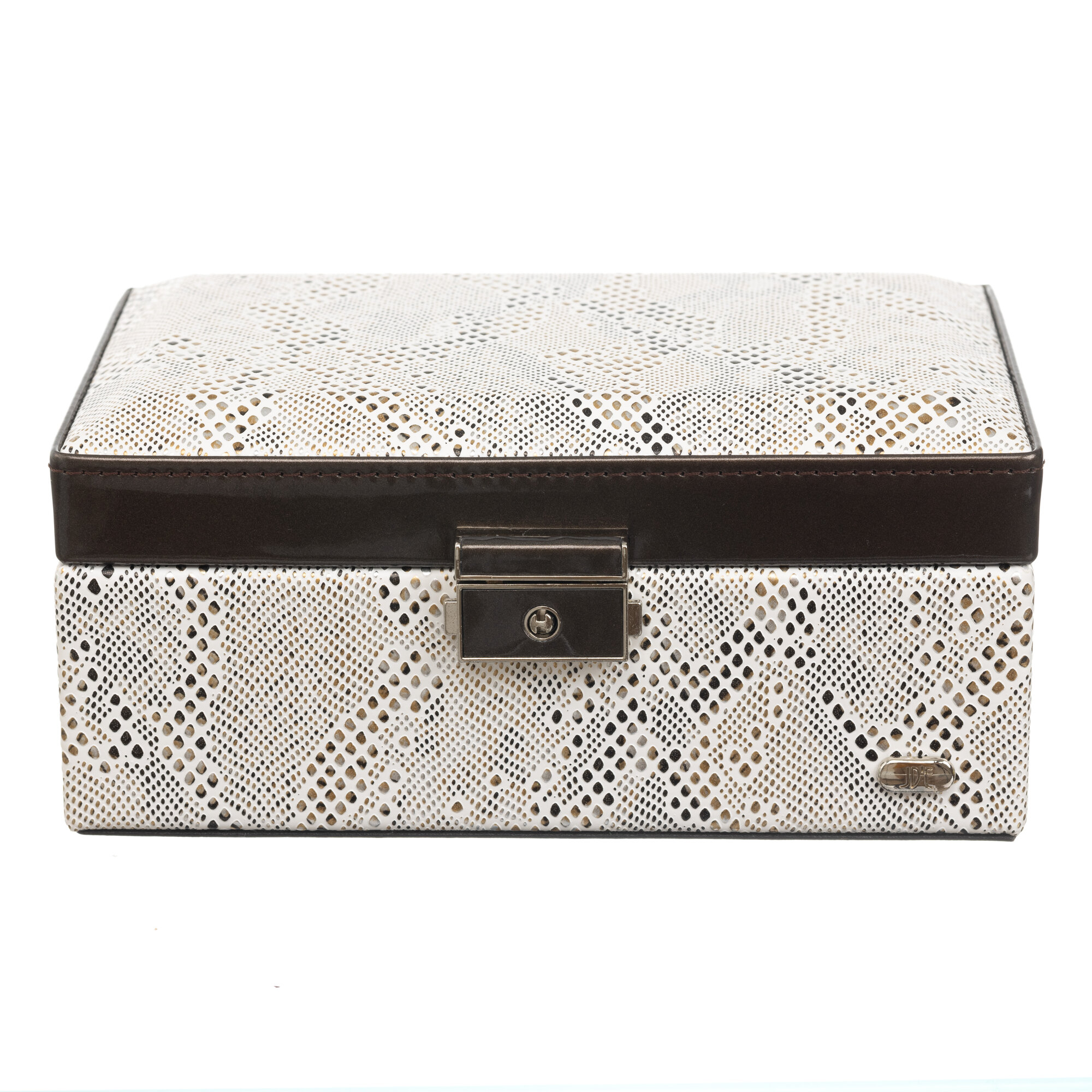 10 цен на Шкатулка для украшений Jardin D'Ete, 18.3 х 12.3 х 8.6 см, искусственная кожа, цвет бежево-золотистый, "змея" (P6292)