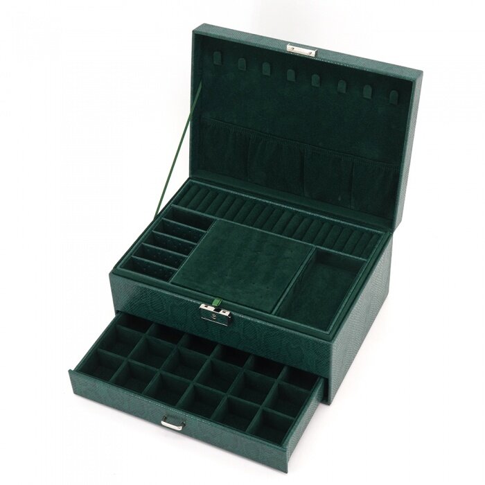Шкатулка для украшений большая деревянная Jardin D'Ete, искусственная кожа, зеленая 8 604 ₽