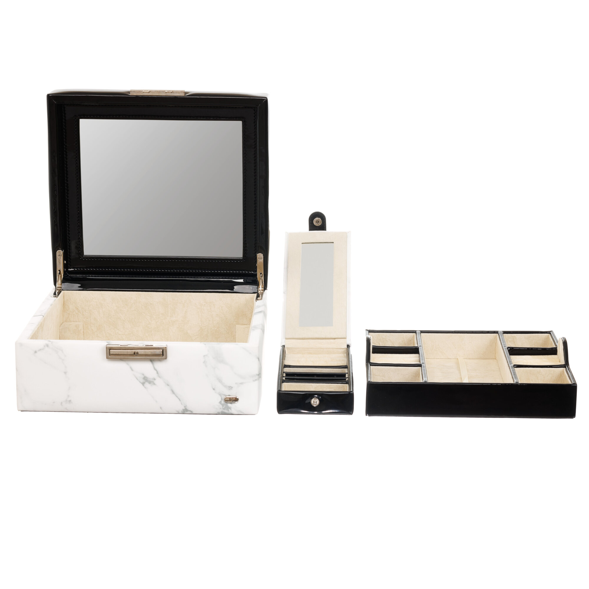 10 цен на Шкатулка для украшений Jardin D'Ete, 24.3 х 21.6 х 11.3 см, искусственная кожа, цвет белый мрамор (P6271B)