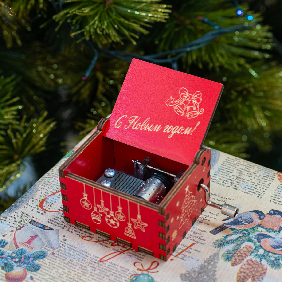 10 цен на Новогодняя музыкальная шкатулка - шарманка, с гравировкой "С Новым Годом!"