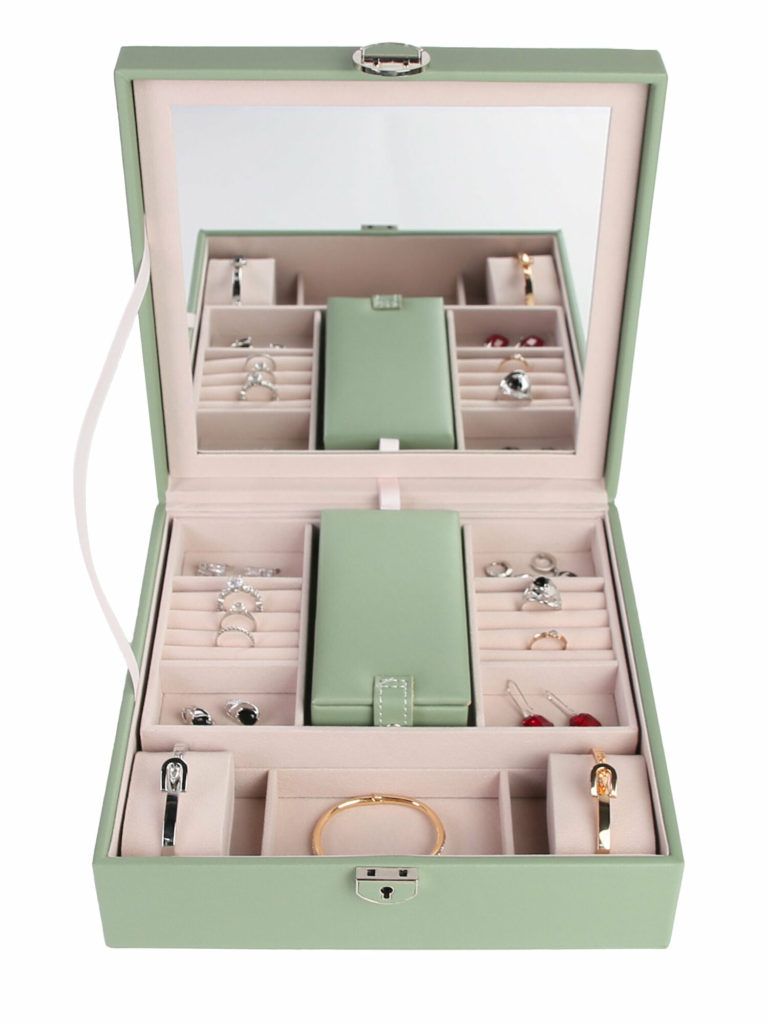 Отзывы на Шкатулка для украшений и часов SAVEZ арт. AZ-CX7191 с зеркалом и дорожной шкатулкой светло-зеленая