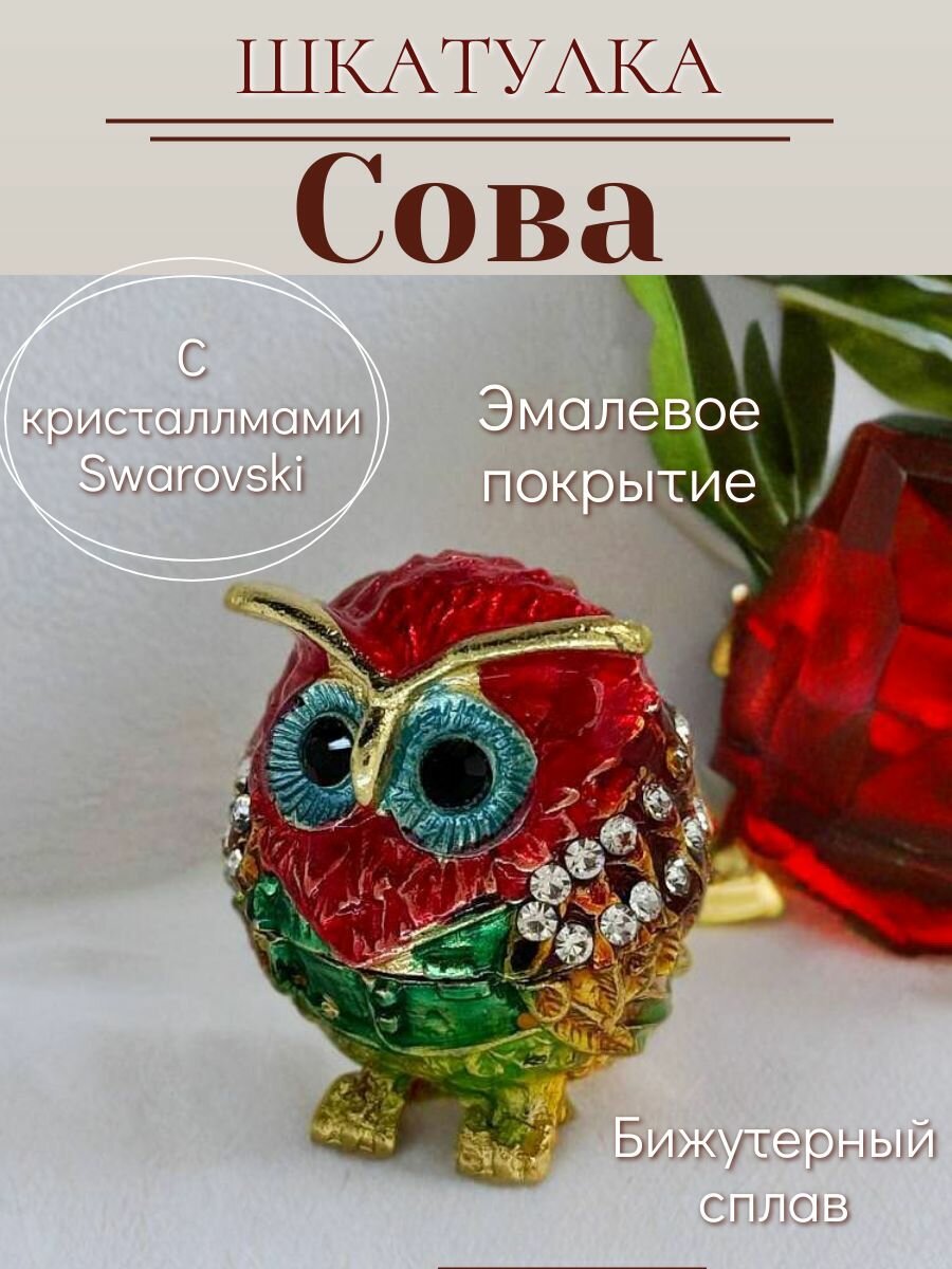 10 цен на Шкатулка со стразами Swarovski для ювелирных украшений Сова 3,5х3 см.
