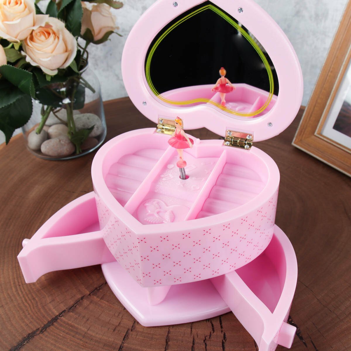 Шкатулка для украшений с зеркалом Remecoclub музыукальная из полимера, 22x12x10 см