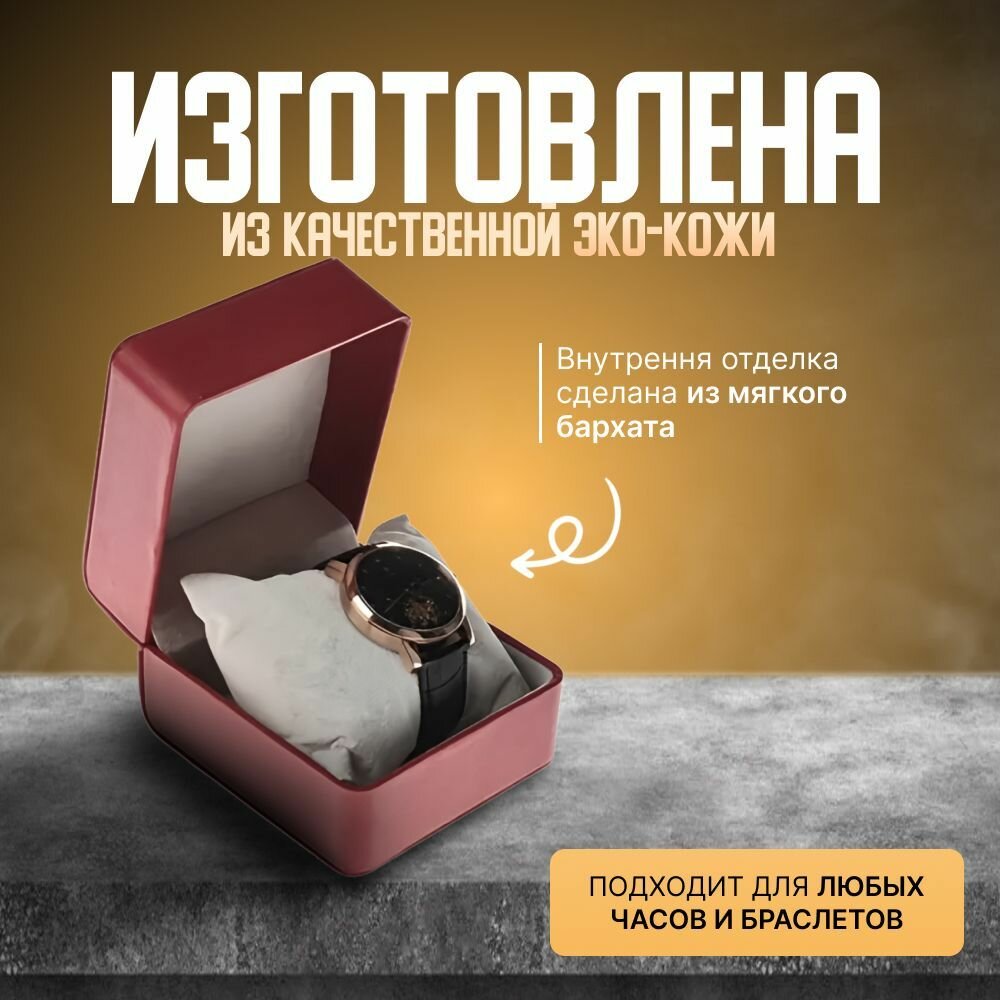 Подарочная шкатулка для часов и украшений одноместная бордовая информация: