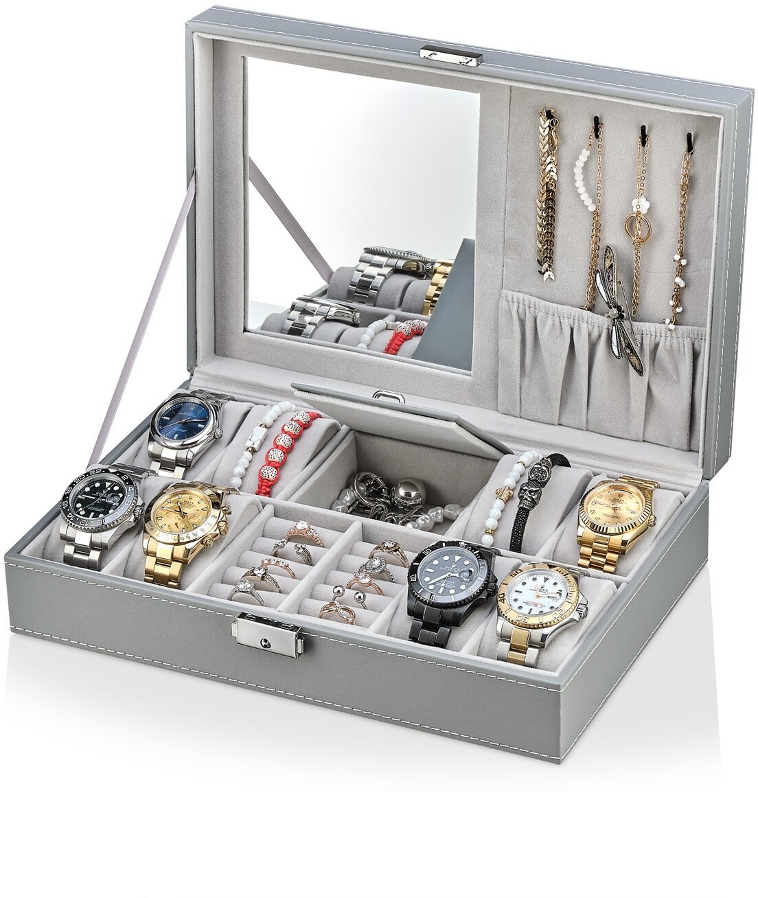 10 цен на Шкатулка для часов и украшений с зеркалом / Коробка для бижутерии / Органайзер для часов и украшений / Футляр для хранения WB-C-183-grey