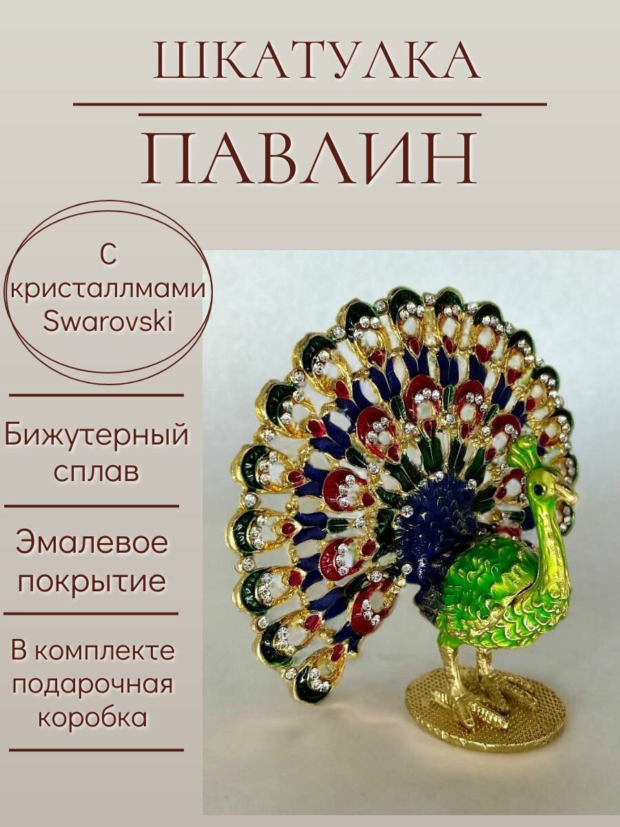 Шкатулка со стразами Swarovski Павлин 11x9 см информация: