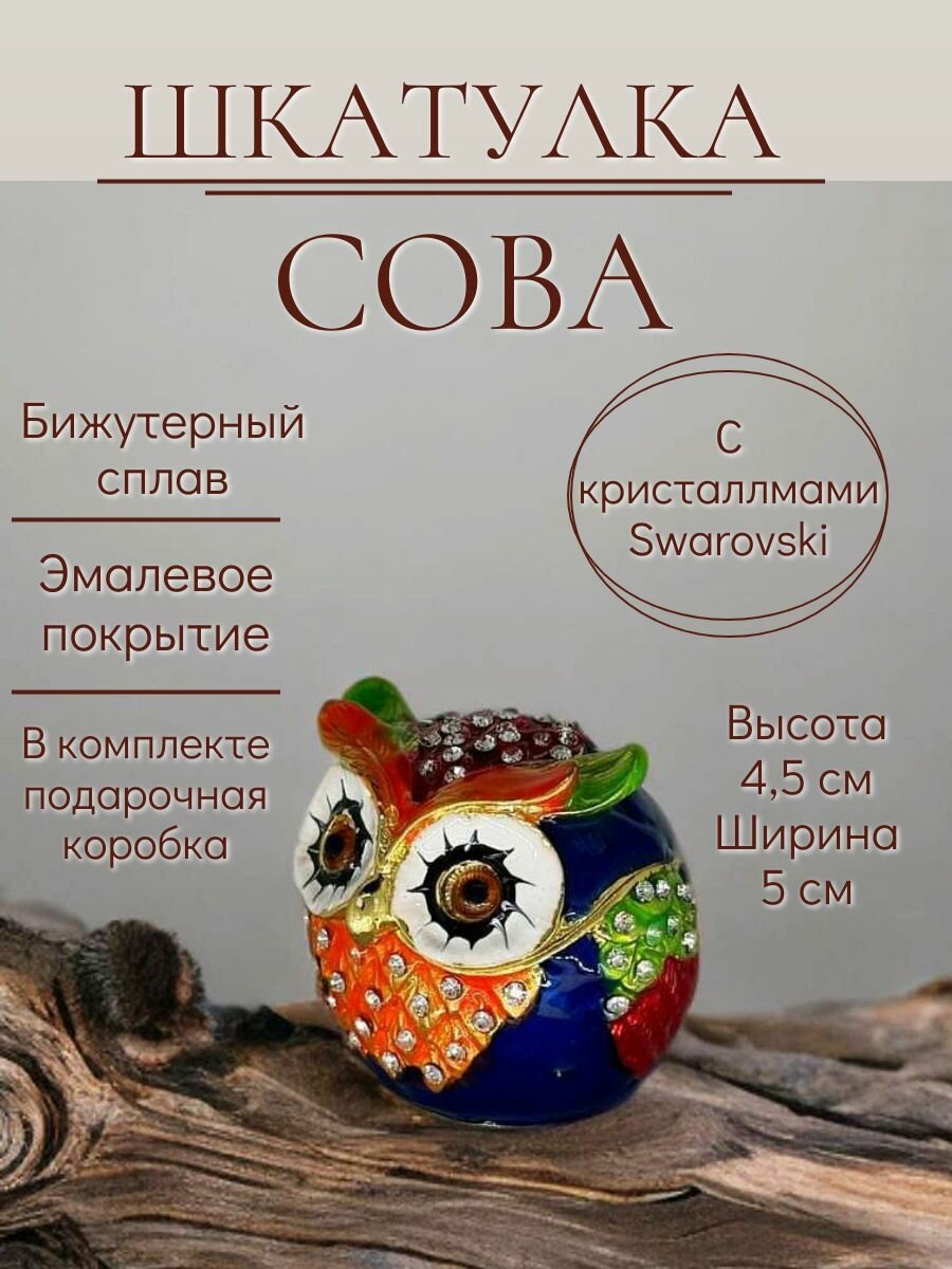 Шкатулка со стразами Swarovski Сова 4,5x5 см информация: