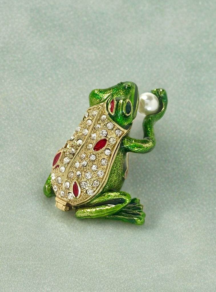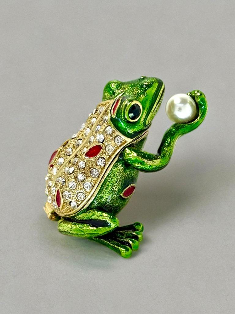 10 цен на Шкатулка-фигурка со стразами Swarovski Лягушка с жемчужиной 4.5x6х4 см