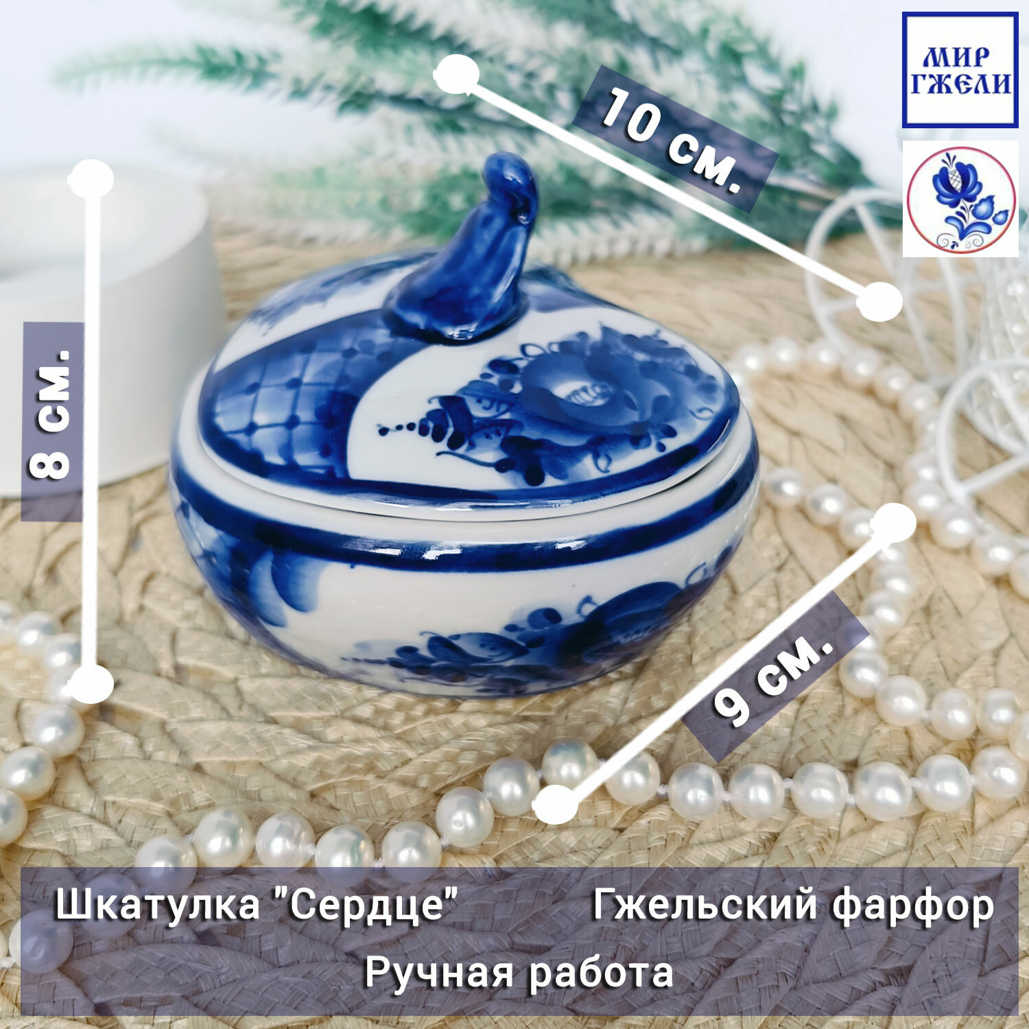 10 цен на Шкатулка для украшений "Сердце", длина 10 см. Гжель, ручная работа